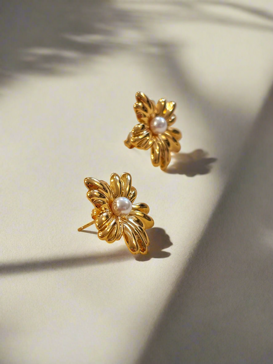 NOYA - Orecchini Fiore Con Perla Nera e Bianca